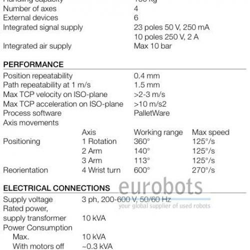 IRB 640是一款为码垛应用而优化的高速、强有力的机器人。拥有世界一流的节拍时间和160kg的搬运能力,这个4轴机器在码垛应用中会大大加快速度和提高效率。