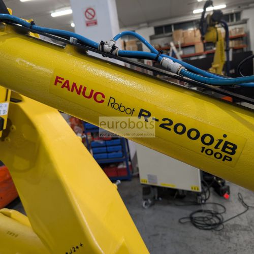 R-2000iB / 100P Industrieroboter auf dem Standfuß mit platzsparendem Design und optimale Flexibilität montiert, die sechste Achse dieser Version ermöglicht eine hohe Geschwindigkeitsposition auf geneigten Flügeln und die Drehung des Stücks von 360 Grad, der J3 Arm ist sehr dünn, Das ermöglicht einen einfachen Zugang zu engen Räumen. Ideal für schwierige Palettieranwendungen, die Schnelligkeit und Vielseitigkeit bieten und die Zykluszeiten minimieren.