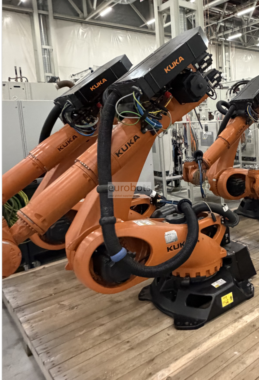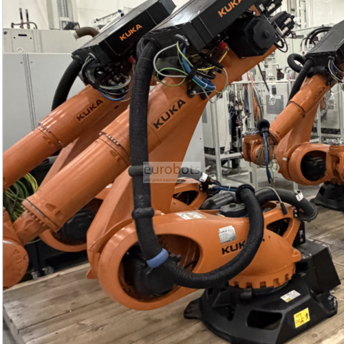 Industrieroboter KR150 R3700K Regal sechs Achsen. Es ist ein schneller und präziser Roboter mit einer Nutzlastkapazität von 150 mm und einer Armreichweite von 3.700 mm, er hat eine Wiederholgenauigkeit von weniger als ± 0,06 mm. Geeignet für allgemeine Handhabungs-, Lichtbogenschweiß- und Bearbeitungsvorgänge, die kurze Zyklen erfordern.