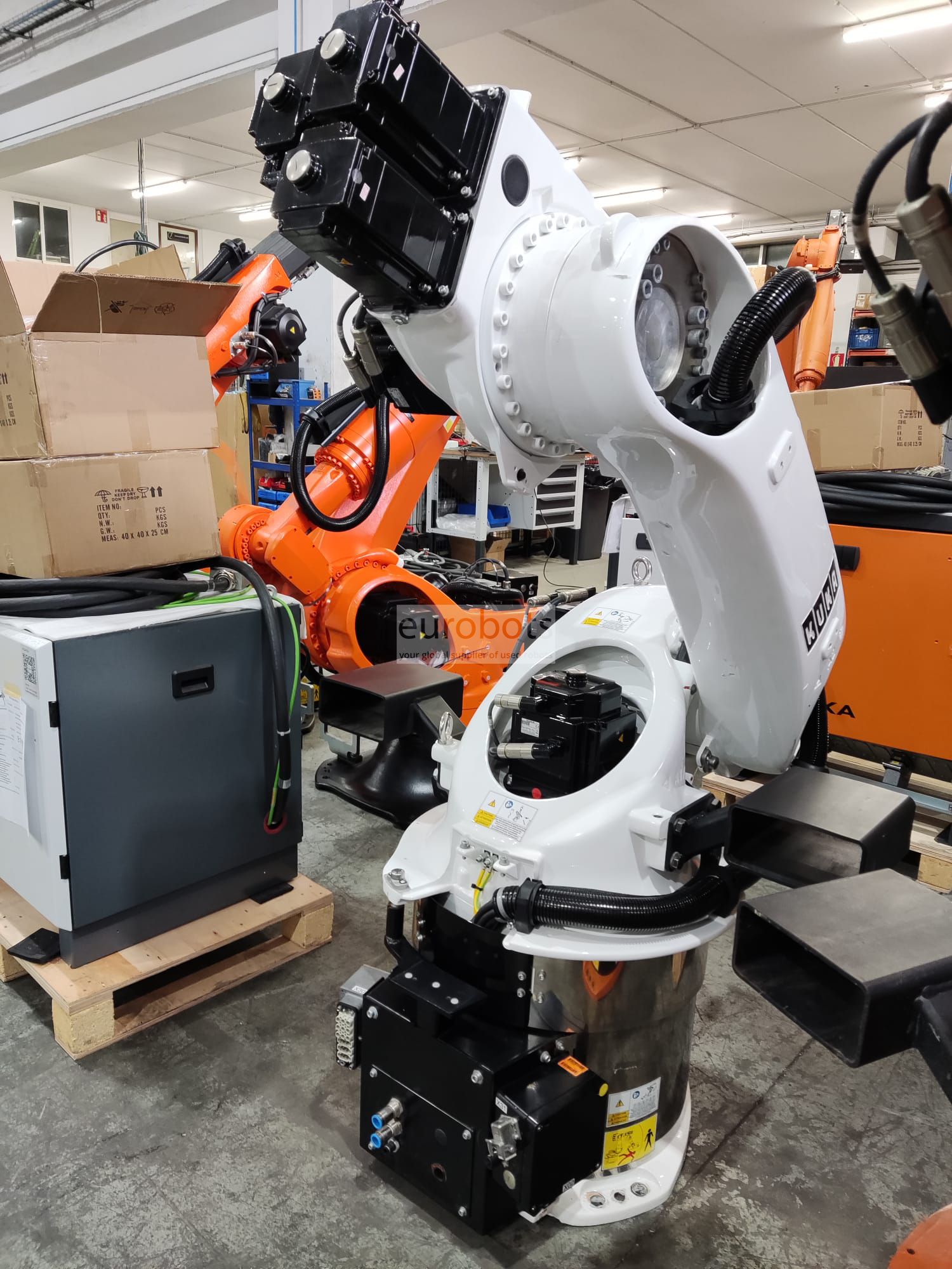 Dieser Roboter stellt sowohl mechanisch als auch elektronisch die neueste Robotertechnologie von KUKA dar. Er ist mit der modernen Steuerung KR C4 gekoppelt.