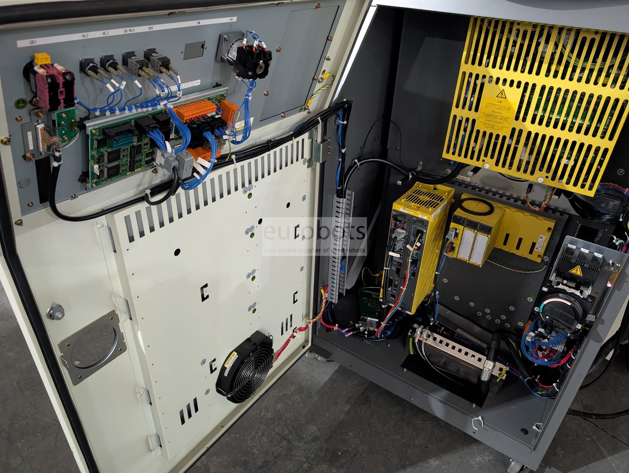 The R-30iA controller has an USB interface in the front panel and a PCMCIA interface inside of the control cabinet
