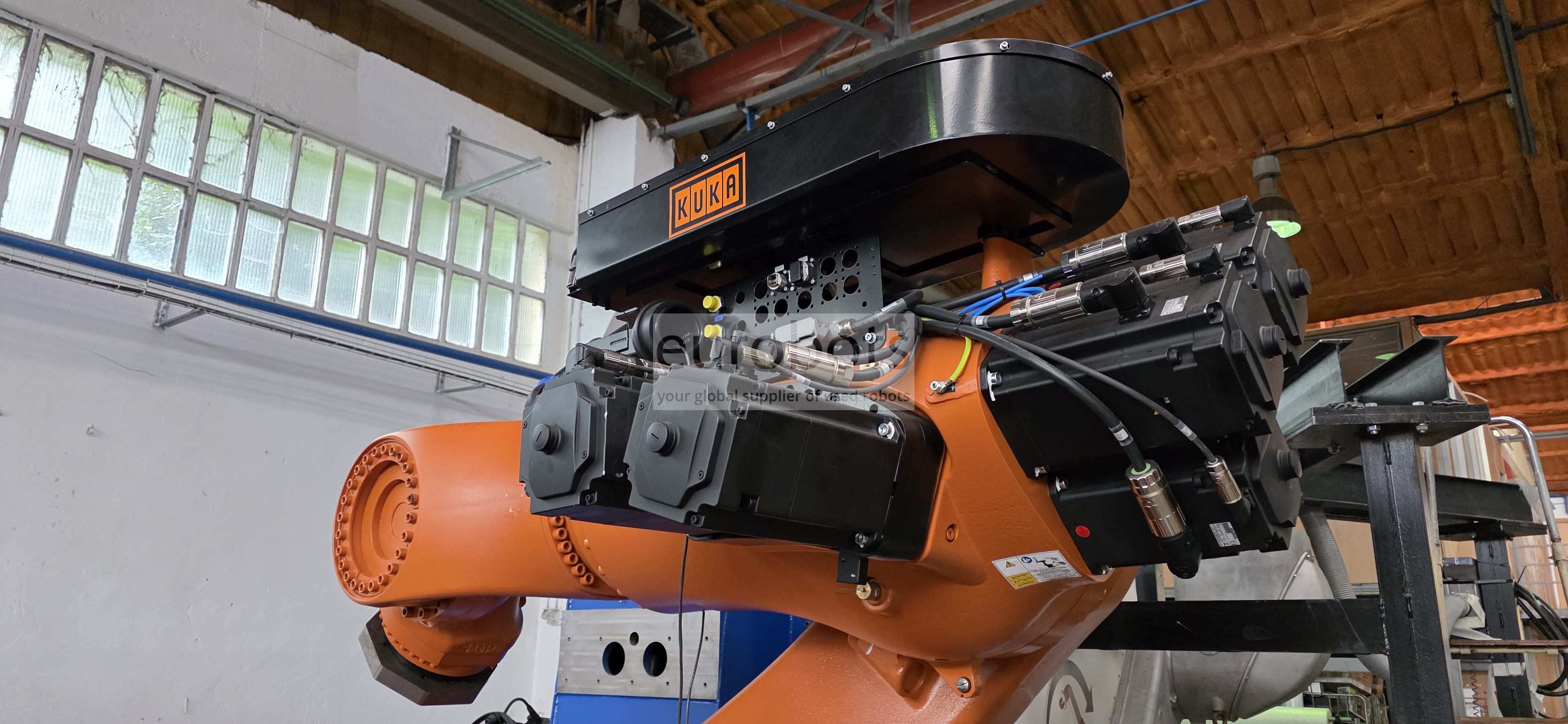 El robot industrial KR 1000 titan esta diseñado para la manipulación de carga pesada de forma segura y precisa, mejora la produccion y reduce los gastos, en combinacion con otros ejes lineales se puede aumentar su espacio de operación de forma efectiva. Es un robot de 6 ejes, una capacidad de carga de 1000 kg y un alcance de 3202 mm, grado de proteccion IP65 y posición de montaje suelo.
